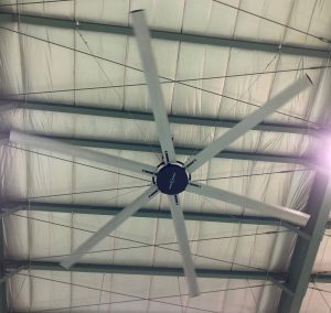 シーリングファンを導入することにより、工場内温度を下げることが出来ました。